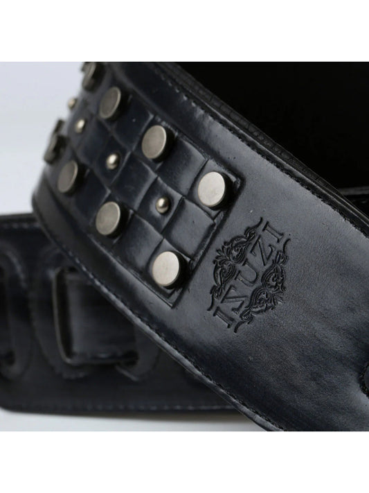 ISUZI LIF02 Coal Black Leather Guitar Strap