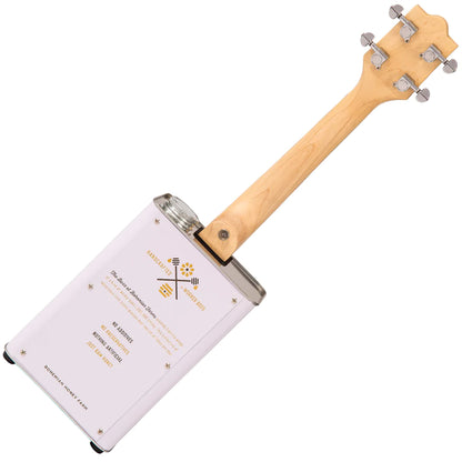 Using the hollow metal body of a typical oil can, the Bohemian Oil Can Ukulele in Honey finish boasts a sleek look and a rich acoustic tone. The guitar also has an impressive number of high-end features including an extended tenon neck, an ergonomic playing style, two P90 pickups, and a built-in stand.