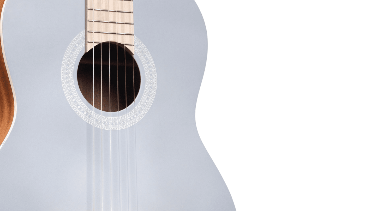 Introducing the Cordoba C1 Matiz Pale Sky – a beautifully crafted classical guitar that marries timeless elegance with modern artistry. This instrument is designed not only to captivate the eye but also to deliver a rich, resonant sound that inspires musicians at every level.