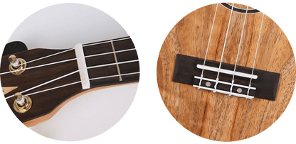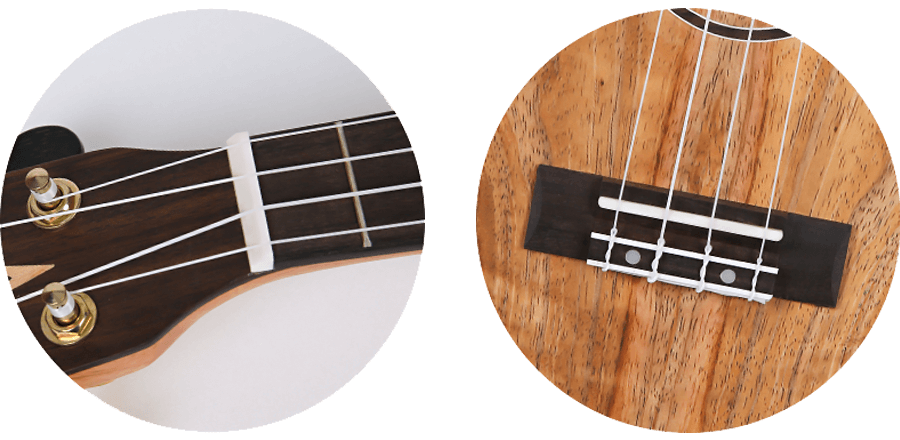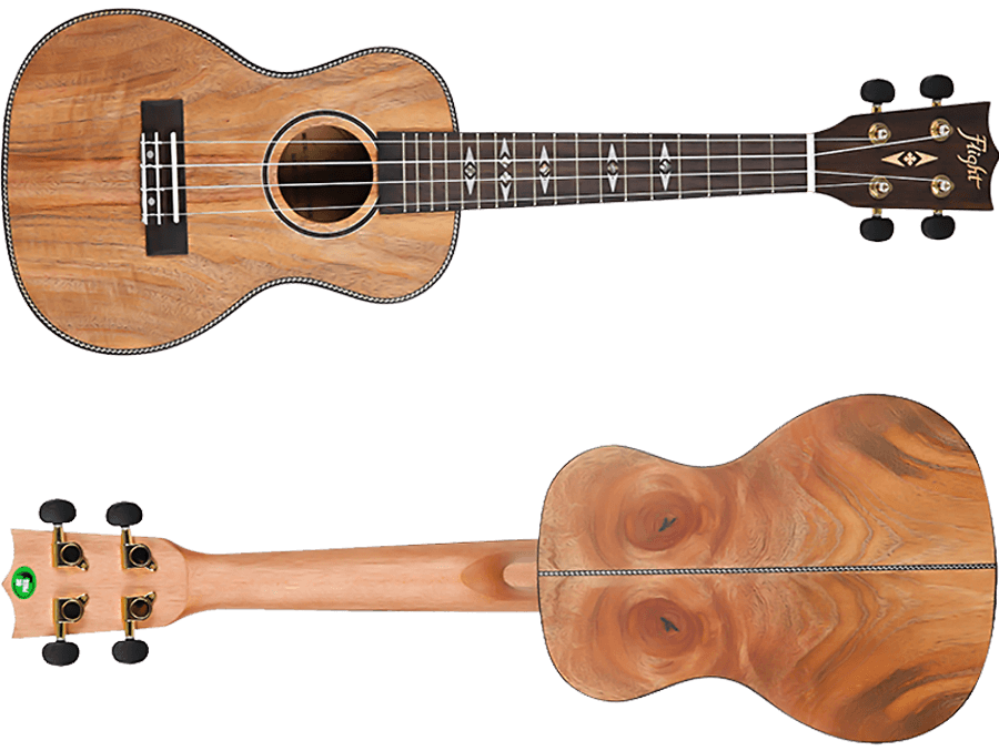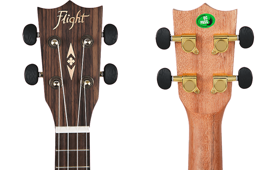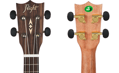 Despite its small size, the nut of an instrument plays a crucial role in its sound. In contrast to most other guitars, the DUC450's nut and saddle made from bone, not from plastic. The exquisite details on this ukulele only add to its uniqueness. The Flight ukulele's headstock is equipped with geared tuners to ensure it stays in tune. In addition to being lightweight and stylish, Flight gig bags offer excellent protection for your uke and will not only help you stay organized but will also turn heads.