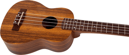 The NUC200's body comprises of laminated teak wood. The laminate woods produce a marvelous sound with delicate power that expedites to make beautiful-sounding ukuleles for a fair price. Teak is a sturdy, commonly used wood that is used in boat construction and furniture. It has the same punch, colour, and volume as mahogany, but with a burnt gold finish. You will love it so much that you can't take your eyes off of it.