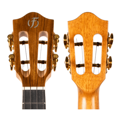 Simple string adjustments are made possible by slotted headstocks, which often ensure sound accuracy. The steeper break angle produces a more stable pitch, while the overall arrangement adds structural stability and improves string vibration over the bone nut. The beige case with the ukuleles is traditional, but Royalty still travels in style. The Princess series was in desperate need of some pampering. The soft 15mm thick padding inside the royal purple-infused burgundy case will hold your ukulele safe and sound.