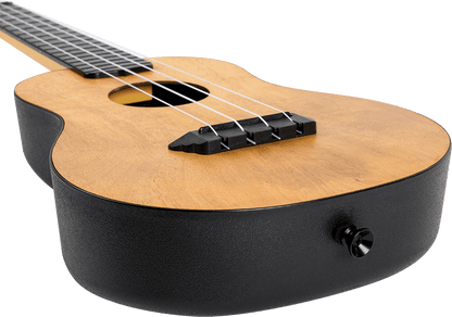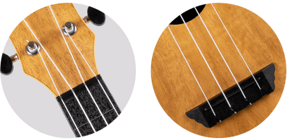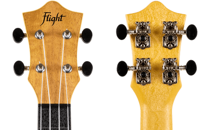 The Flight TUC has more volume than the usual concert ukulele, and it resonates freely with a vivid, punchy tone thanks to its arched ABS back. Furthermore, the ukulele is long-lasting and resilient to humidity changes, which have caused many wood ukuleles to deteriorate over time. The soundboard and accompanying headstock of the Flight TUC55 MANGO is made of laminate mango. Mango is a beautiful wood with a tone that reflects its beauty. This ukulele's neck and fingerboard are made of ABS plastic. The Flight TUC55 Travel Concert Mango can endure temperature variations and is simple to clean and maintain. The ABS neck has a wood pattern on the surface, which makes it a more realistic feel than flat acrylic.