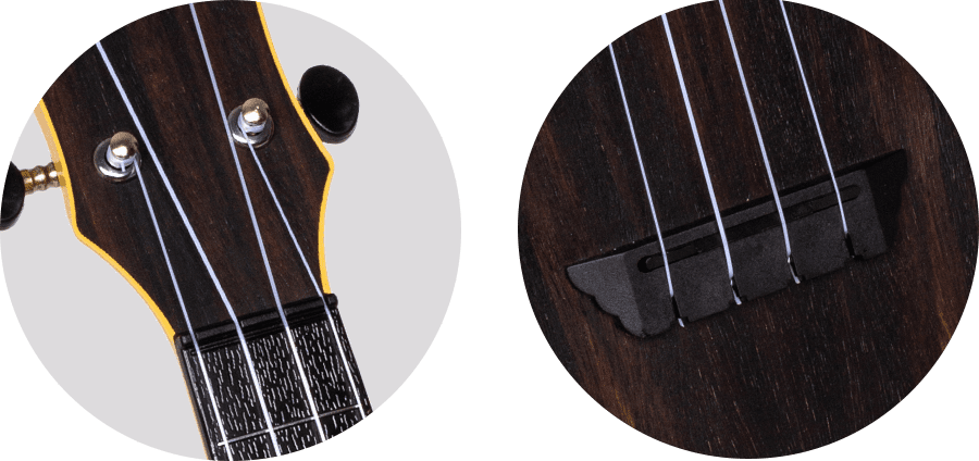 Flight presents ukuleles with cool colors and amazing graphics. But the Ukulele indicates the classical ukulele's conception by using Amara laminate. This wood is known as ebony and sometimes as Amara. It is wood rich with dark, thrilling grain. It has a mysterious, deep, full tone. This Flight TUS55 Travel Ukulele neck and fingerboard feature ABS plastic. This is an ideal option for ukuleles since it is not likely to affect the temperature. You will never experience a sharp fret or a twisted neck. The instrument has a wooden finish on the neck, which makes it sound different from a plastic ukulele when you play it.