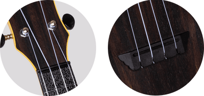 Premium Features: Zero Fret, Wooden Top, Arched back, Open Geared Tuners, ABS Fretboard, Side Position Markers, Strap Button, Aquila Super Nylgut Strings.