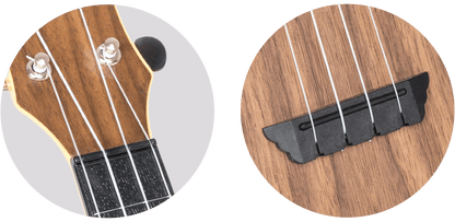 Premium Features: Zero Fret, Wooden Top, Arched back, Open Geared Tuners, ABS Fretboard, Side Dots, Strap Button, Aquila Strings.