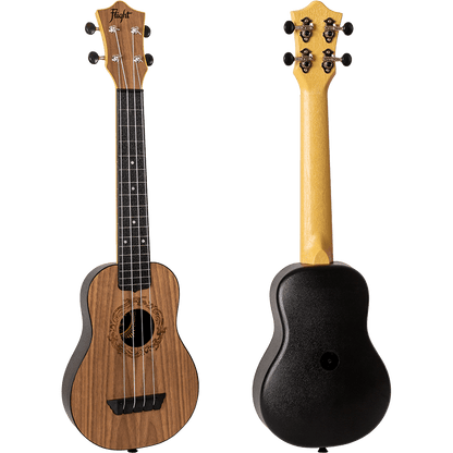 The Travel Series is a truly unique range of ukuleles. They are made almost entirely from ABS plastic, but with a wooden top. The Flight TUSL50 Long Neck Travel Ukulele has a walnut top with a wiped colour satin finish. The arched back, plastic body allows for great sound projection, but also fantastic durability. There is no binding between the body and neck, which is also plastic and so will not bend. This ukulele is perfect for beginners, for players that need a portable uke but also for players looking for something a bit different.