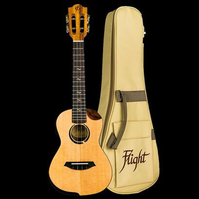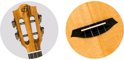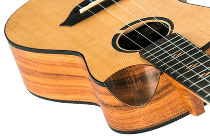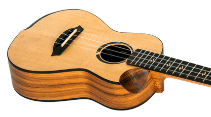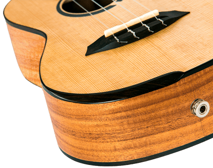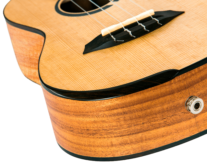 The Victoria concert deserves its name as royal. Flight Victoria Concert Electro Ukulele features the highest-level strong spruce top with its laminate acacia back and hand. Spruce is the brightest tonewood, while acacia is considered richer and warmer, so it is a match made in heaven together. The acacia lightens the punchy luminosity of the skin and gives the ukulele a rich, circular tone. African mahogany neck gives the players stability, a warm tone, and a smooth feel. Ebony is used to making Victoria's fingerboard. Ebony is a rich, thick hardwood that is the world's most expensive wood.