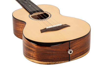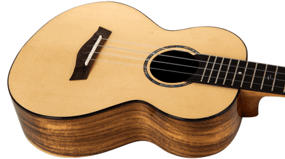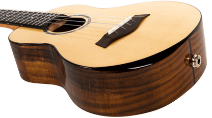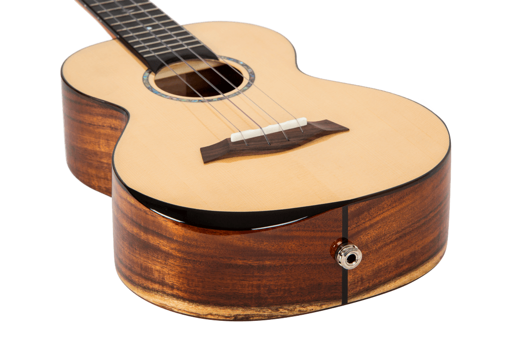 Flight Voyager All Solid Tenor Ukulele is also a fantastic ukulele, with a sturdy top and solid acacia back and side. With solid acacia on both ends, the Voyager has the best quality solid spruce top. Spruce has none of the rugged and stunning designs of other exotic woods but is a stalwart for the richest colors of a reliable wood instrument. The comfort edge has an attractive rosette and a distinctive headstock shape for decent players. One of the new ukulele patterns is a string-through bridge. It improves the resonance of the top since strings are connected to the top soundboard directly, not to the bridge. The ebony armrest has been designed to have a smooth surface to keep your arm comfortable, but it can look as elegant as a ukulele flight could be.