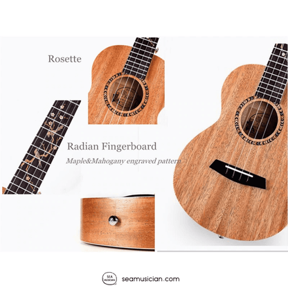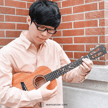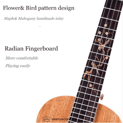Its concert size offers the ideal balance between comfort and projection—providing more room on the fretboard than a soprano while maintaining portability. The smooth neck, precise fretwork, and well-polished fingerboard ensure effortless playability, making it suitable for beginners and experienced players alike.