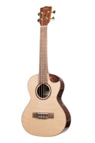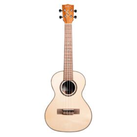 The Kala KA-SPT-SC is a beautifully crafted tenor ukulele that combines bright projection with striking visual appeal. Its solid spruce top produces clear, punchy tones, while the spalted maple back and sides add warmth, sustain, and one-of-a-kind grain patterns that make every instrument unique.