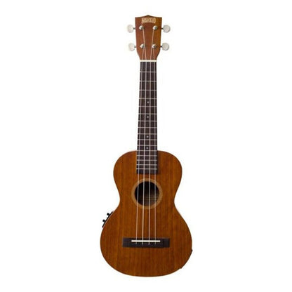 Mahalo Java Concert Electro Ukulele features the highest quality Indonesian tonewoods hand-selected by Mahalo's expert craftsmen. The fingerboard and bridge are made of teak, the neck is mahogany, and the body is made of exotic Nyatoh. Mahalo Java series ukuleles are finished in a distinctive see-through, gloss finish that reveals the quality of the tonewoods. Java's ukuleles have an arched back, Canadian Nubone bridge saddles, and a gig bag to increase bass response and projection. Aquila strings have also been designed to produce a fuller, richer sound with more balance.