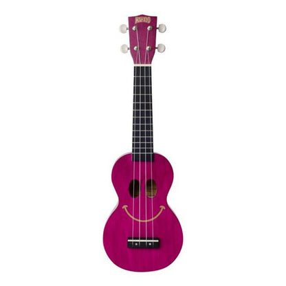 The Mahalo 'Kahiko' series (inspired by a Hawaiian Hula dance) is available in a range of semi-gloss transparent colours, such as purple, which bring out the detail of the wood grain. Kahiko ukuleles follow in the footsteps of the existing Mahalo range, using top quality materials and consistently high build standards as well as providing great value for money. The body is made from Sengon and the bridge and fingerboard (inlayed with brass frets) from mahogany. Supplied in a handy bag. The Kahiko Smile ukulele has a fun design, is comfortable to hold and is an excellent beginner instrument.