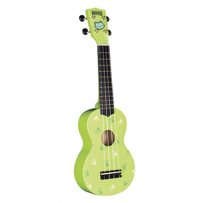 Put a smile on your face with this uniquely decorated frog design ukulele from Mahalo. This soprano ukulele is part of the Mahalo 'Art' series. With its maple body, it produces a bright tone and good volume. Reliable geared machine heads make tuning easy and accurate. Includes a nylon cover for transportation.