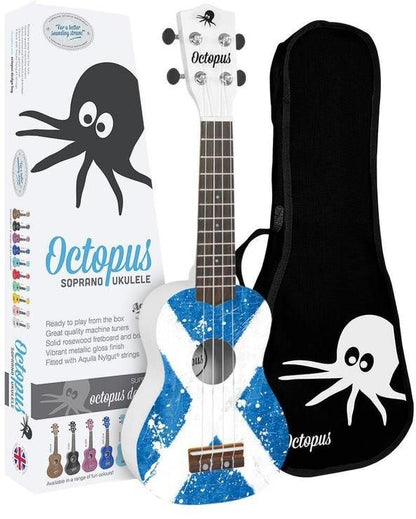 The Octopus Flag Series Soprano Ukulele - Scottish Saltire combines the vibrant spirit of Scottish heritage with the joyful sound of the ukulele. Perfect for beginners and seasoned musicians alike, this ukulele offers a fun and exciting way to express your love for Scotland while enjoying the ease and playability of a soprano ukulele.
