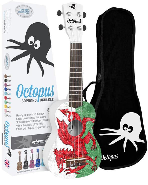 - Vibrant Welsh Dragon Design: The standout feature of the Octopus Flag Series Soprano Ukulele is its bold and colorful Welsh Dragon graphic. This iconic design adds a unique touch, showcasing your pride in Welsh heritage while offering a distinct and attractive look on stage or in your music collection.