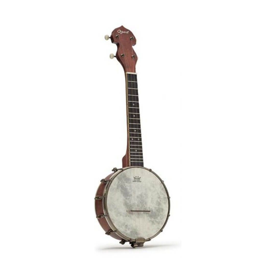 This is a lovely little ukulele banjo that you just won't want to put down. It is popular with players who love its aged finish and old-style look, as well as its authentic tone. The vintage style Ozark ukulele banjo has an 8" diameter wood shell fitted with a Remo head and brass tone ring, 12 plated brackets and mahogany finish rim and neck, as well as a baffle-style resonator. To complement its aged brass finish fittings, it has a cream bound fingerboard and old-style open machine heads with cream buttons. For protection, it comes with a padded gig bag