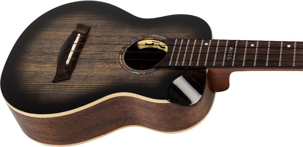 Peter Moss is one of the most well-known and respected names in the UK ukulele scene. He recently teamed up with Flight to produce a signature model. This model features a pearloid rosette in the front, a white binding, and off-set fret markers and side position markers. It also has a double C1U ukulele pickup. The Flight Peter Moss Signature Concert Ukulele is made of rosewood, a wood that has a mellow sound and reduces the harshness of higher frequencies.