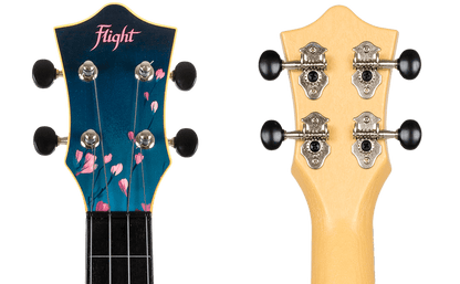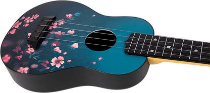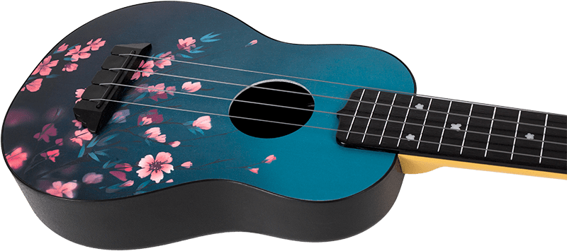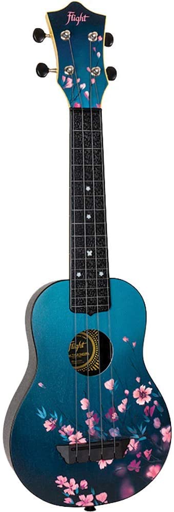 Flight TUS32 ABS Travel Ukulele Sakura's unique ukulele has a cherry blossom design that is fitted with a strap button and is strung with Aquila Sugar strings. This classy ukulele definitely stands out from the rest of the Flight Travel ukulele range.