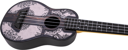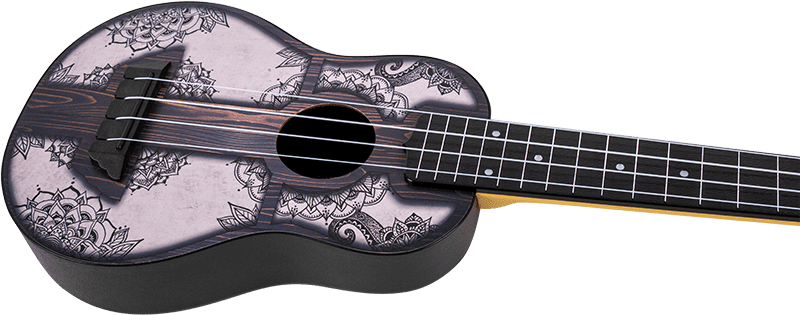 The Soprano Travel Ukulele is available in a wide variety of colors and various patterns.