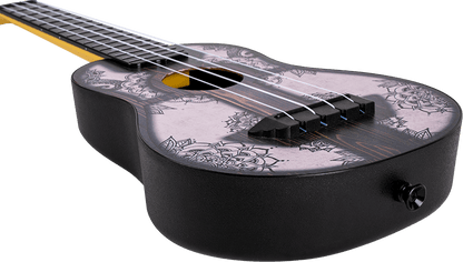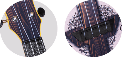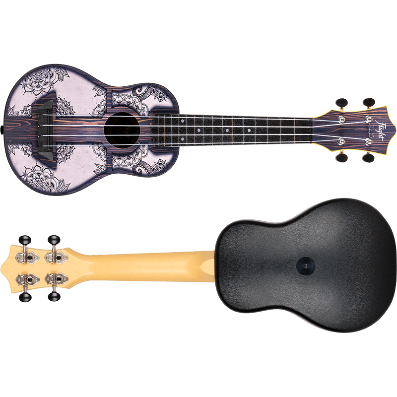 Flight Travel Ukes have shown themselves as one of the strongest and most stable ukuleles. The TUS40 Mandala Wood Travel Ukulele flight is so unique that its architecture reflects Eastern Spiritualism in its geometrical design. Flight provided cool colorful travel series or amazing graphic designs, the TUS40 Mandala Wood Soprano Travel Ukulele is one of them. It is a traditional ukulele design with laminated linden wood. Linden has a light, breezy sound and a smooth texture.