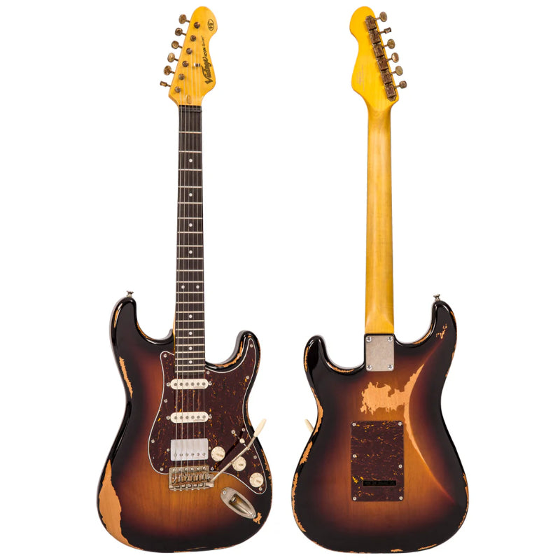 Vintage V6H ICON HSS Electric Guitar ~ Ultra-Gloss Distressed Sunset Sunburst